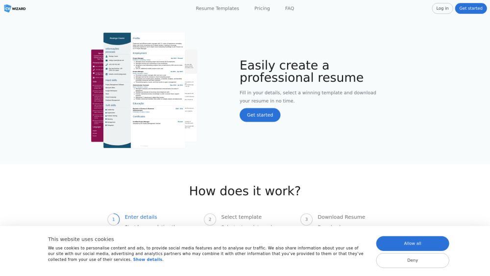 CVwizard is an online platform designed to help users create professional resumes and cover letters quickly and easily. It offers an intuitive wizard that guides users through the process of filling in their information, selecting a template, and downloading their resume. The platform also provides features such as job vacancy alerts and tools for managing job applications.