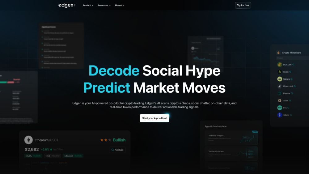 Edgen is an AI-driven market intelligence center designed to empower traders of all backgrounds. It integrates multimodal AI agent clusters, real-time social sentiment pulse scanning, and on-chain data discrete learning to provide comprehensive, cutting-edge crypto and social signals.