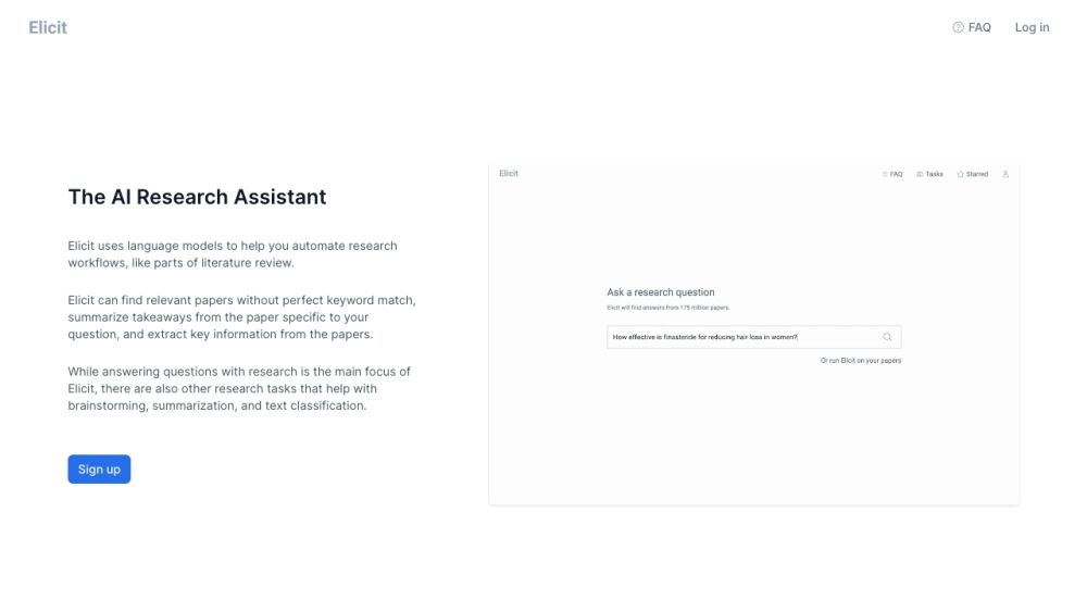 Elicit is an AI research assistant designed to streamline and automate various research workflows, particularly in literature reviews. It leverages advanced language models to assist researchers in finding relevant academic papers, even when keyword matches are not perfect. Elicit can summarize key takeaways from papers tailored to specific research questions and extract essential information efficiently.