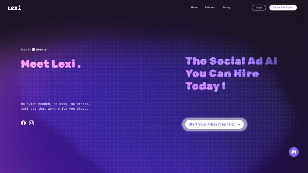 Lexi AI is an innovative tool designed to leverage artificial intelligence for generating and optimizing Meta ads, specifically targeting Facebook audiences. This tool is tailored for ecommerce businesses, small business owners, and marketers aiming to enhance their advertising performance and maximize return on investment (ROI).
