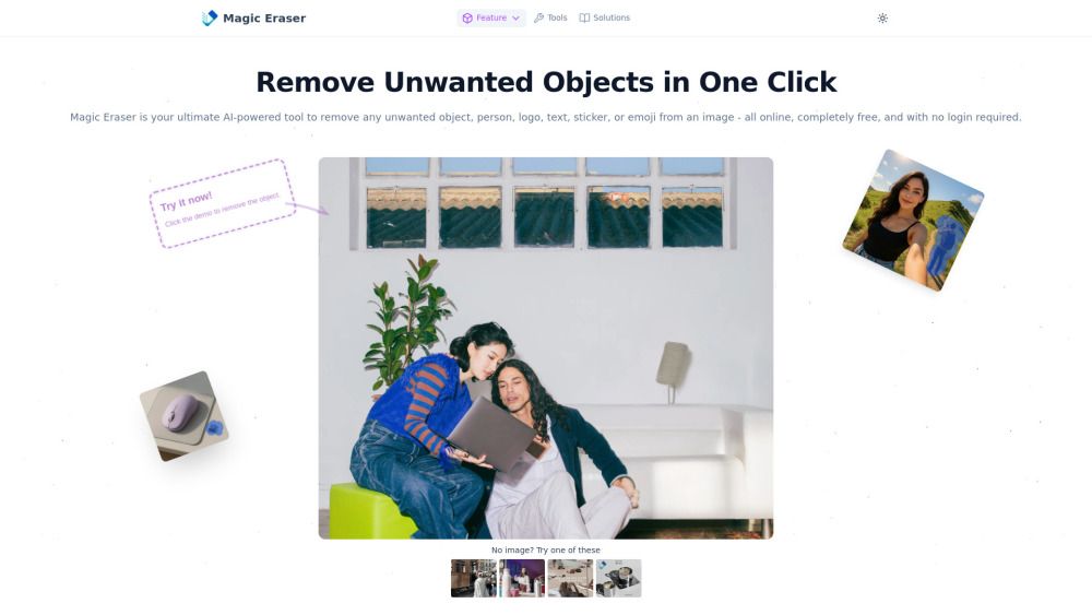 Magic Eraser is an ultimate AI-powered online tool designed to effortlessly remove any unwanted object, person, logo, text, sticker, or emoji from images. It operates completely free of charge and requires no login or sign-up. Utilizing cutting-edge AI technology, Magic Eraser ensures that unwanted elements vanish with incredible precision, seamlessly reconstructing the background without damaging the original image quality. It supports major image formats like JPG, PNG, and WEBP, making it ideal for cleaning up portraits, travel photos, product images, memes, posters, and social media content.